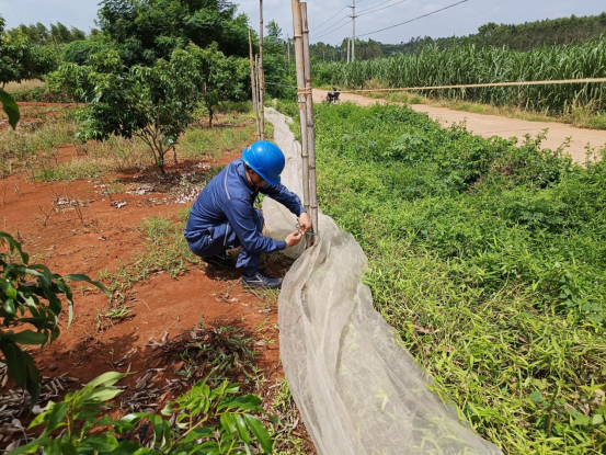 9月4日,南网超高压公司海口分局员工对线路沿线漂浮物隐患进行检查加固。吴永政 摄