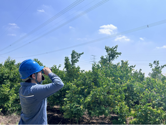 9月4日,南网超高压公司海口分局员工开展风偏树障测量。徐可凡 摄