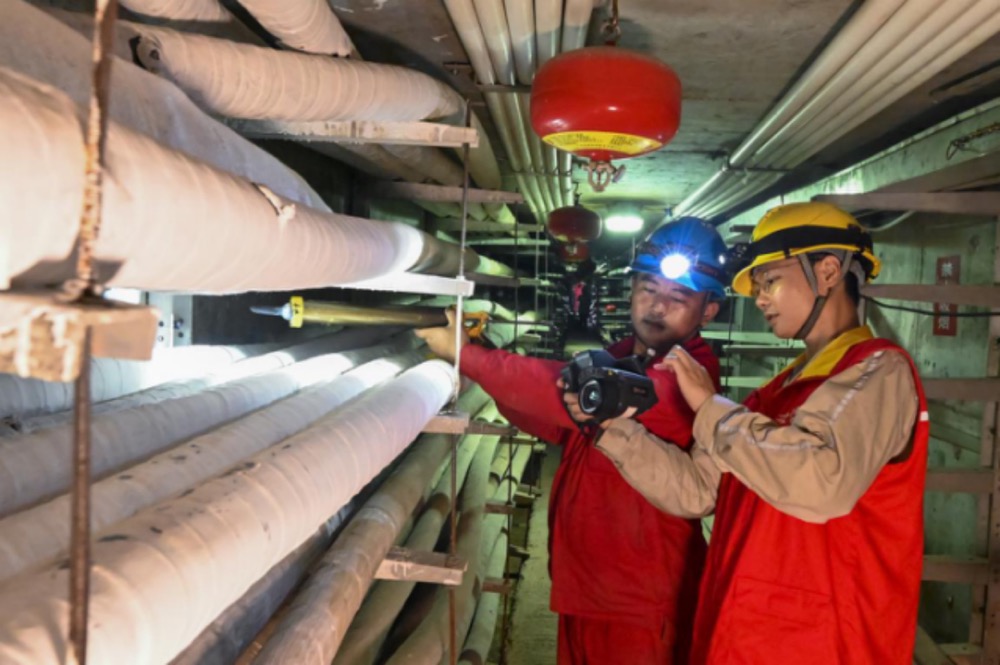 国网重庆璧山供电公司电缆运维员工在110千伏秀湖电缆隧道特巡测温。(蒋佩 摄)