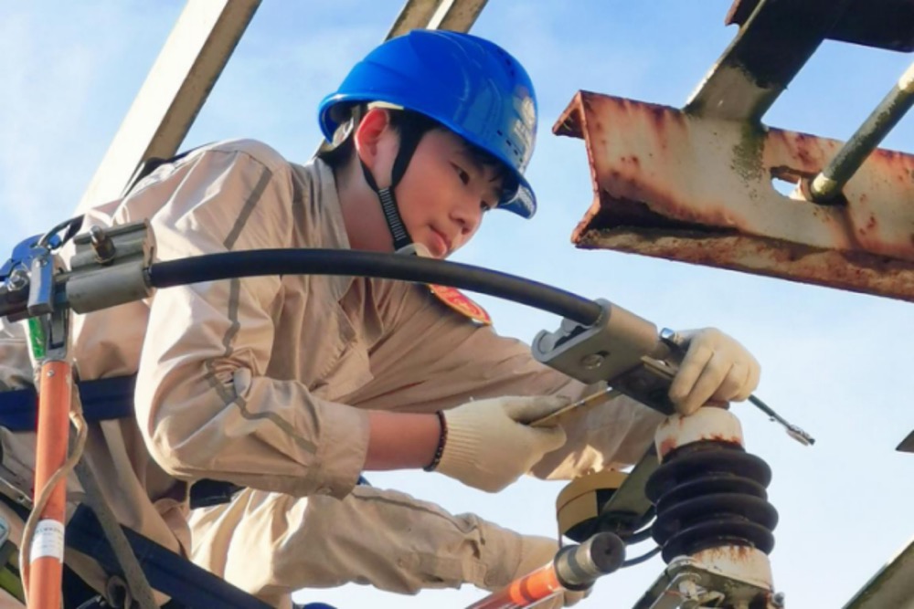 国网重庆长寿供电公司员工在220千伏长庄东线24号铁塔带电处理高温发热隐患。(况敏 摄)