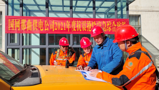 图为:邹立勋(右2)指导那曲公司开展首次应急综合演练。