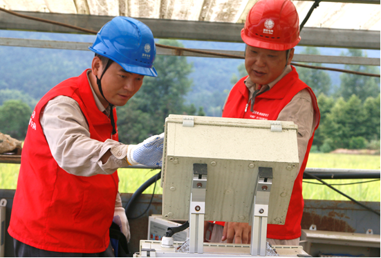 国网浦城县供电公司工作人员检查抽水灌溉用电。