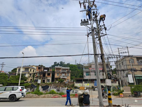 施工当天,灼热阳光烘烤着,汗水顺着供电人员的脸颊不停流淌,也浸湿了衣衫。但他们依旧有条不紊地更换刀闸、拆除旧电杆、新立电杆等,各项工作井然有序地进行。古雷镇供电所领导班子也来到一线检查指导线路改造升级工作,与一线作业人员并肩作战,确保施工任务能够安全、有序地完成。
