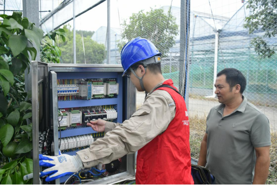 据了解,该基地占地面积500亩,以引进种植红美人柑橘、锦绣黄桃、蓝宝石葡萄、阳光玫瑰等水果品种,并通过先进的栽培技术、现代农业设施技术和科特派团队长期服务等举措,建立起现代农业种植体系。眼下八月正是柑橘的的果实膨大期,基地种植用电设备需长期不间断运行护航果实生长,因此基地需要更可靠稳定的供电。