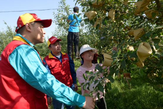 “他们也想找点活儿干,但是很少有地方愿意雇用超过65岁的老人,看大门都不行。”考志康书记说:“我们鼓励他们在果园里做一些基础工作,拔草、给苹果套袋之类的。”现如今,在村里务工的村民最大年龄75岁,村里根据工作量,每日发放工资100元至120元不等。同时,驻村工作队也会用“爱心超市”积分作为补充奖励,鼓励村民自主创收,村民整体人均年收入从2021年的7000元一路飙升至如今的16000元。