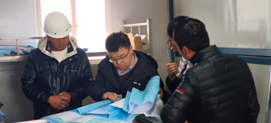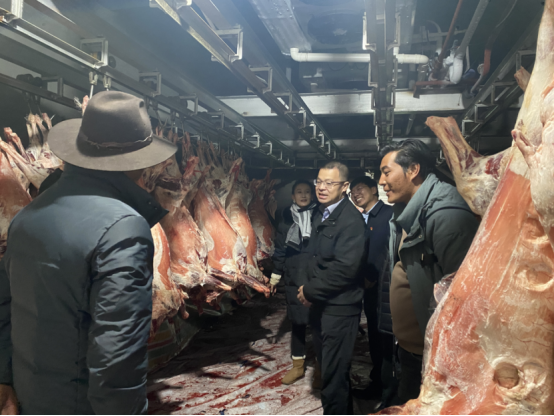 2023年9月23日,张忠锋到玛多县花石峡镇畜产品加工厂检查项目建设进展情况。(左二为张忠锋)徐智杰/摄