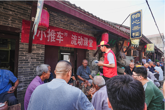图为:7月24日,濉溪县供电公司党员服务在临涣茶馆宣传安全用电。沈亮/摄