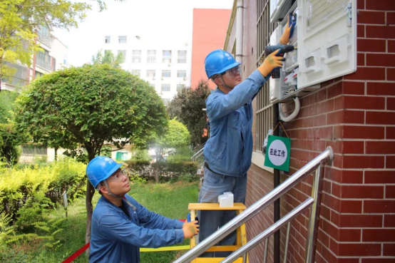 图为:国网石嘴山供电公司工作人员对老旧小区电力设备及线路进行改造,消除安全隐患。孙帅/摄
