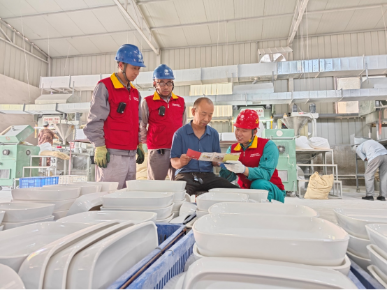 在生产厂房里,几十台机器高速运转,一个个压膜机仅用短短数十秒,就能压出形态各异的碗具。“与传统的陶瓷产业相比,密胺仿瓷餐具工艺流程相对简单。陶瓷的花纹需要烧制,密胺制品所有的花纹都能印刷,时间更快,成品耐摔耐用,在生产过程中要求预热、素面、贴花、加金等环节一气呵成,生产设备一旦开动,就不能停止运转,因此对供电可靠性要求极高,你们经常帮我检查用电设备,让我更放心了。”周华锋乐哈哈的说。