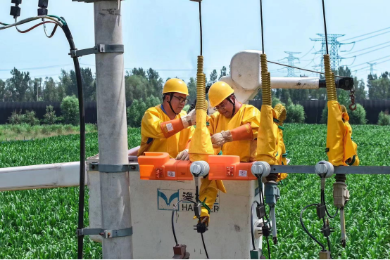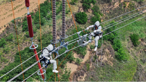 不只是在超高压输电线路,在城市、农村,在各类电压等级供电线路上,随处都可看到电网员工挥汗如雨带电作业的身影。