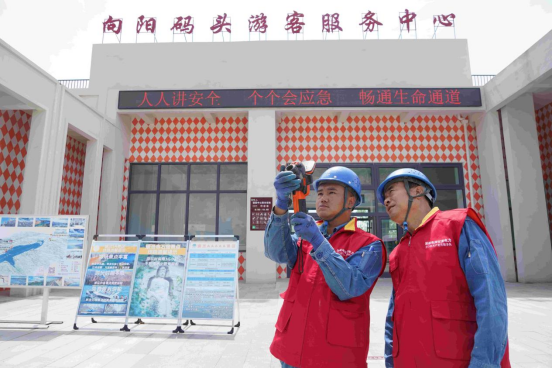 “现在是旅游旺季,大家巡视测温时重点盯高负荷设备,排查设备隐患要不留死角。”7月2日,向阳码头游客服务中心附近,国网兰州供电公司永靖县供电公司三塬供电所员工王有武和同事刘斌斌到配电台区开展巡视测温,确保夏季高温旅游期间供电持续可靠。
