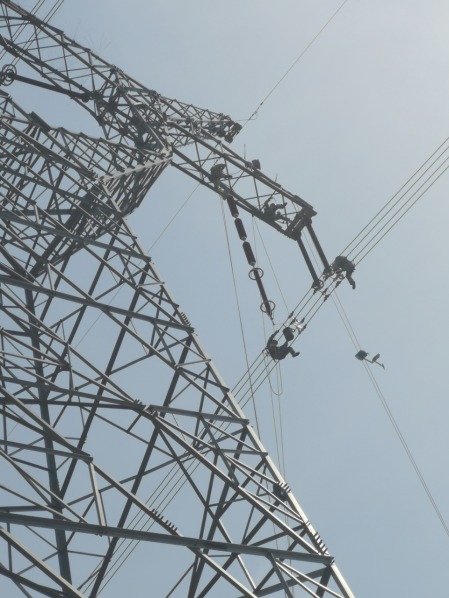 中午12时,在不停电、零感知的情况下作业圆满完成,两组L型左右对称的避雷器装置,像是给铁塔装上了两个“大耳朵”,时刻为迎峰度夏电力供应提供着安全可靠的保障。
