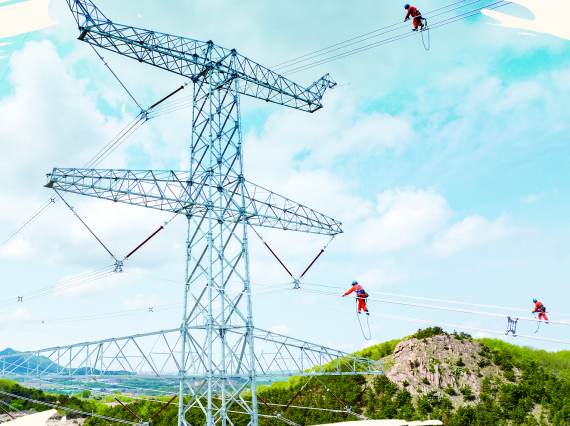 ▲图为国网山东电力员工在迎峰度夏重点工程——500千伏岛城(黄埠岭)输变电工程线路开展三级自检,该工程预计6月26日送电。