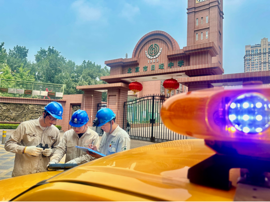 为有效应对近日连续高温天气,中考前夕各单位进一步加大考点外电源和内部电力设施的巡检力度。