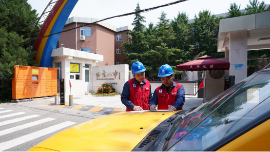 当天,国网北京城区公司电力保障人员聂文涛、高勇也冒着高温,对辖区内北京市第九十六中学(北校区)的外电源线路和校内供用电设施进行测温及电压、电流等检测。“咱们学校是今年新增的中考考点,之前我们已经对学校重要用电负荷开展过排查摸底。考试期间请规范使用各类电器,并密切关注设备运行状态,有任何异常情况咱们随时沟通,大家齐心协力为中考考生营造安全可靠的用电环境。”两人边整理检测设备和记录册,边向校方电力负责人徐勇叮嘱安全用电注意事项。