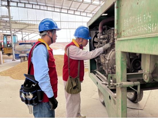 侯马市海鸿农业科技专业合作社位于侯马市张村办事处小里村,厂子现有1台分离器、1台烘干机、1台脱粒机、2台运输机,每年“三夏”和“三秋”季节都是农业生产用电需求量最高的时候,用电量约14万度,党员服务队员定期对合作社的小麦分离器、烘干设施、脱粒机等设备的线路、开关以及应急电源进行仔细排查,解决用电“疑难杂症”,确保机器设备健康运转。