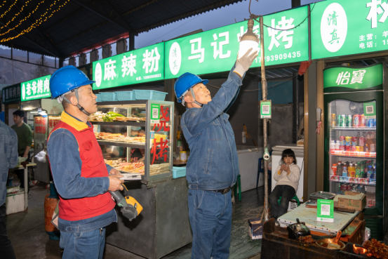 “最近一碗天水麻辣烫把天南海北的游客领进了甘肃的大门,咱们两水的麻辣‘三件套’也跟着火了起来,我们这的美食街是‘夜经济’的重要载体,定期巡检该区域供电设备,排查线路缺陷和安全隐患,能够确保线路安全稳定供电。”当晚,连心桥(陇南金橄榄)共产党员服务队队员们游走于各大摊点间,对摊点用电情况进行详细检查,提醒广大商贩在营业的同时注意用电安全,指导商铺做好排插布置,规范私拉乱接、使用老化破损的线路及排插等电器设备等情况,发现并处理用电安全隐患14处,发放安全用电宣传资料2000余份,为麻辣烫“火出圈”作出电力贡献。