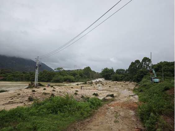 急降雨将原本潺潺的溪水扩展成奔腾的洪流,1时许,湍急的流水将10千伏镇石线113号铁塔基础周边土地冲蚀殆尽,铁塔应声倒地。得益于近年来坚持不懈的网架改造,线路运行方式更加灵活了,旧镇镇供电所当机立断,将全部用户转移至其他馈线,及时恢复了辖区用户的正常供电。同时充分实地踏勘,重新规划线路走向,将新建杆塔位置移至离溪岸稍远处的平地上,从根本上解决问题。雨势稍缓,队伍集结,线路修复工作即时展开。