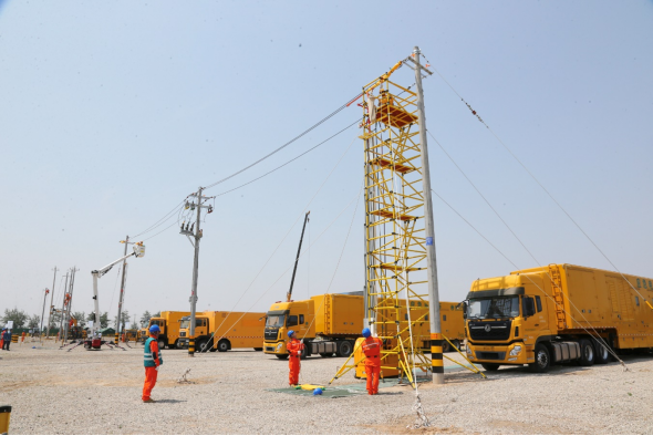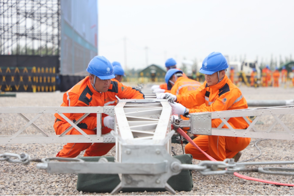 演练以强台风侵袭导致德州电网局部受灾,同步叠加漳卫南运河上游河水暴涨为背景,采用“实战演练+视频观摩”方式开展。整场演练共设置变电站防汛应急处置、配网设备快速抢修复电等8个科目,展示了各场景下电力供应保障监测预警、应急响应、后期处置等流程环节。其中,新一代应急指挥系统ECS模块化应用,跨区抢修支援等“1+7+10”(1个应急抢修总体工作方案、7个专业部门应急抢修工作手册、10类典型场景抢修复电方案)防汛防台应急抢修体系核心内容演练,起到了典型示范作用。