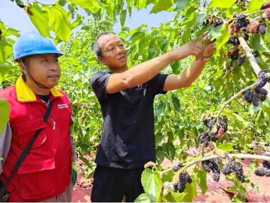 “今年桑葚长势喜人,口感极佳,幸亏前期灌溉及时。现在价格一路向好,收入也是稳稳当当。”老梁自豪地介绍到。“今年天旱,全靠电力抽水灌溉,你们功不可没。”老梁对党员服务队队员们连声道谢。