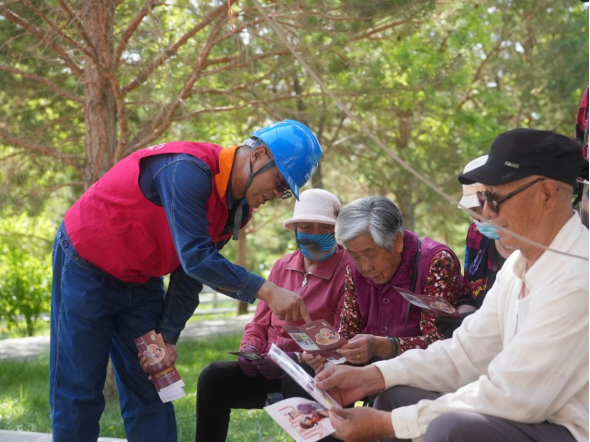 国网嘉峪关供电公司共产党员服务队开展安全用电宣传活动,向居民耐心讲解安全用电知识。