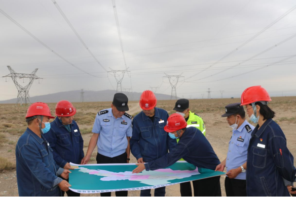 国网嘉峪关供电公司开展警店联动,全力确保大电网电力通道安全合规合法运行。