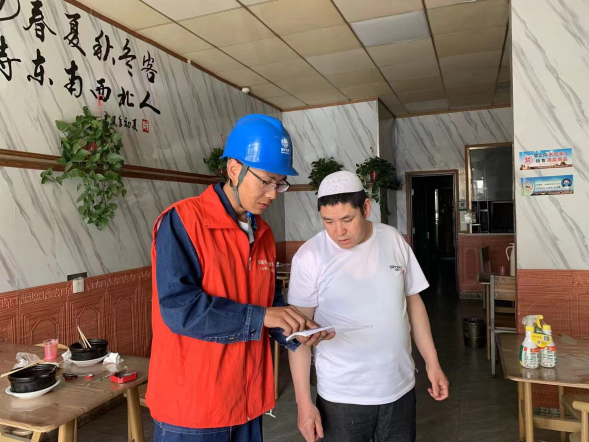 国网嘉峪关供电公司共产党员服务队为当地少数民族上门提供供电服务和咨询。