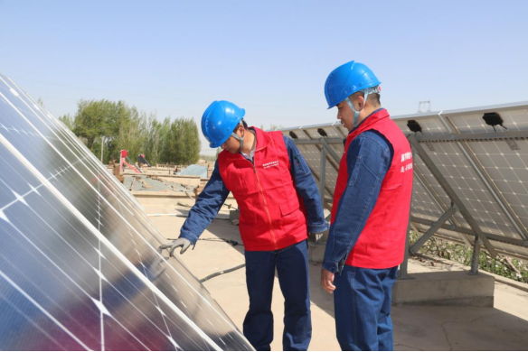 嘉峪关公司共产党员服务队定期为分布式光伏用户检查。