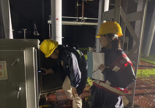 5月20日晚,福建莆田供电公司员工冒雨到220千伏盖尾变进行110千伏盖榜II路送电倒闸操作。(解超楠 摄)