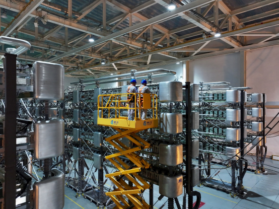 据悉,本次检修为舟山柔性直流工程投运10年来最大规模检修。以五座换流站的枢纽站——舟岱换流站为例,工作人员需要对阀厅内的子模块、水冷系统、穿墙套管等装置和站内的变压器等电力设备进行“全科体检”,共涉及8个工作面、210余项检修和试验工作,是工程投运以来检修规模最大的一次。