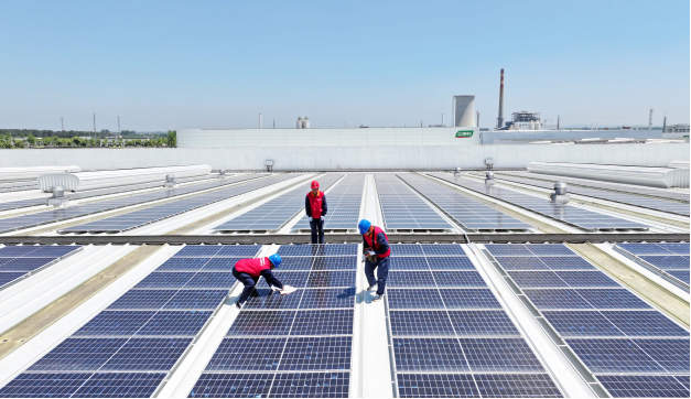 5月14日,安徽省明光市供电公司技术人员在安徽三棵树涂料有限公司的厂房屋顶对光伏电网进行巡视检查,保障发电设备稳发满发。夏日来临,安徽省明光市在企业厂房屋顶建设的“屋顶光伏发电站”迎来发电高峰期。近年来,明光市大力推广企业屋顶光伏发电项目,帮助企业合理利用生产厂房屋顶等闲置区域架设光伏发电设备。
