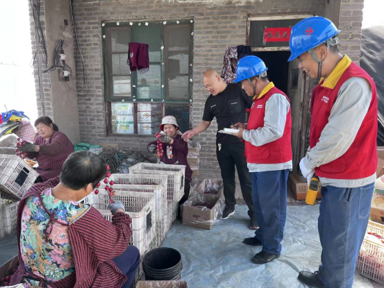大棚里,该公司党员服务队员主动为农户提供“零距离”服务,帮助他们检修浇灌用电设备、整理电源线路,对排风扇电源线烧损等隐患及时处理。同时,还为种植户大棚的温控、卷帘机等电气化设备的正确使用提供建议和帮助,引导用户使用防护灯具和插座,宣传安全用电知识,全方位做好优质供电服务。