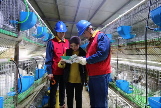 5月10日,国网庆阳供电公司共产党员服务队队员来到环县洪德乡河连湾村,对环县福利野兔养殖场用电设备进行安全检查,向负责人了解用电需要,帮助用户排除隐患,用心服务地方养殖产业健康发展。