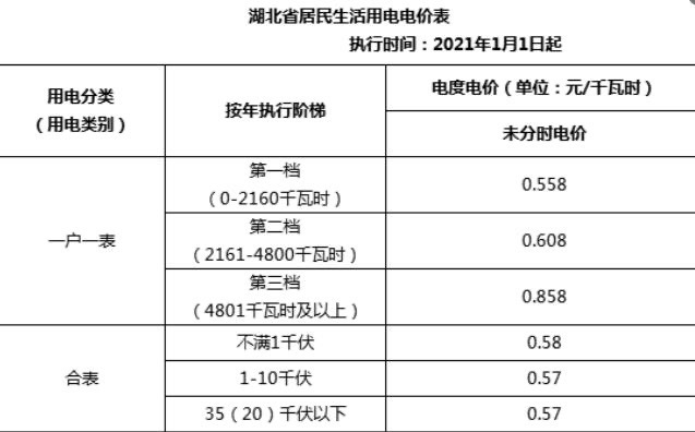 湖北省居民电价仅执行阶梯电价,三档的电度电价分别为0.558元/千瓦时、0.608元/千瓦时和0.858元/千瓦时。上海市等地的居民电价则在阶梯电价的基础上叠加了分时计价。