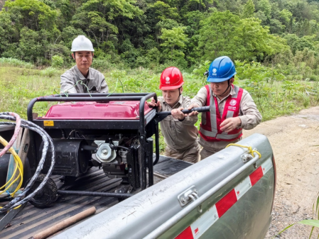 “1、2、3……”大家合力抬起发电机爬上抢修车。傍晚时分,一抹银色在蜿蜒盘旋的山路上穿行,抢修队员们坐在车里你一言我一语地调侃着,林间的风夹杂着蒙蒙细雨,有些调皮地闯进车窗好像要加入他们的热聊,又是难忘的一次抢修经历。