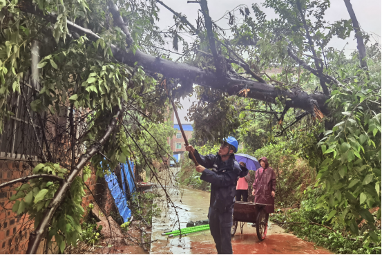 五象分局开展内涝避险停电工作并处理倒塌树木。