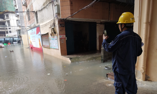 5月8日上午,南宁市将暴雨橙色预警信号提升为红色。武鸣区局部暴雨至大暴雨,新兴公寓、富城公寓等低洼地内涝,部分供电线路、设备受影响。南方电网广西南宁武鸣供电局与政府做好联动,提前安排人员到易内涝小区进行排查、蹲点,根据水位情况,随时采取临时停电措施,确保不发生涉电事件。