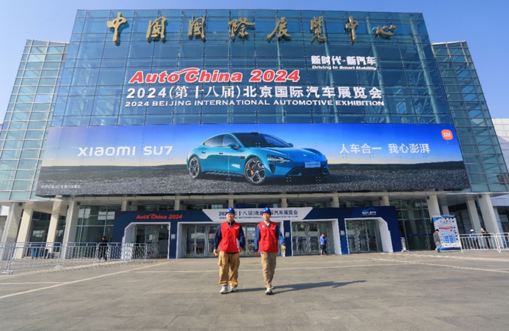 图为4月25日,国网北京顺义供电公司员工持续开展2024北京国际车展供电保障工作,协助客户排查用电安全隐患,对外电源及内部设备进行不间断巡视。