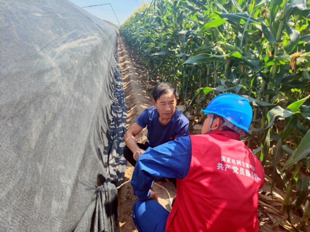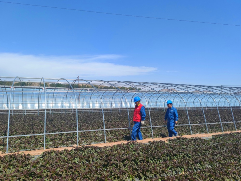 国家电网甘肃电力连心桥(一心百合)共产党员服务队在兰州市红古区河咀村蔬菜大棚开展用电检查工作,保障春耕春灌可靠用电。张辉 摄