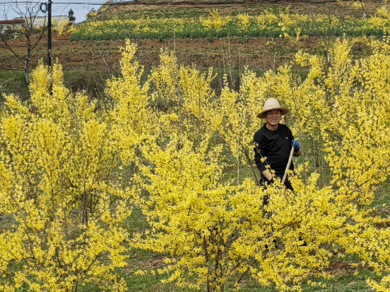 “连翘根系发达、适应性强,耐干旱,适宜在荒山荒坡生长,2019年,我将退耕还林的8亩土地种植为连翘,2023年开始挂果,8亩地初次收益5000余元,我还在种植连翘的地里套种了柴胡,且连翘一次种植可连续收益二三十年,投资少、见效快、收益期长、市场需求量大,前景好、收入高。随着连翘树逐年长大,一年比一年挂果多,一年比一年收入乐观。今年的连翘长势喜人,满枝金黄,这金灿灿的连翘都是真金白银。”小山村村民虎平会高兴地说。