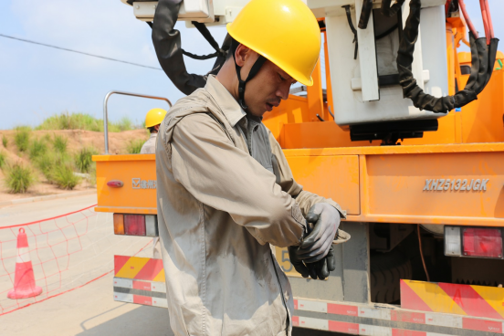 带电作业长时间在狭小的斗臂车内工作,身旁还伴有高压电流发出的“嘶嘶”声,需要进行物理绝缘,身上的装备一样都不能少,特别是夏天,不透气的绝缘服经过阳光暴晒后,变得更加闷汗。虽然张黎明早已脱下军装,但不怕苦不怕累的精神已经深深烙印在骨子里。每一次带电作业都是一次只能成功不能失败的任务,所以他每次在闲暇之余,佩戴三层厚手套进行拧螺丝等精细动作的模拟练习,找到“手感”。