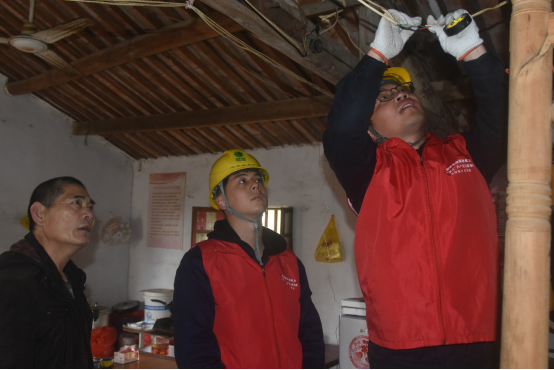 国家电网福建电力“双满意”(莆田电力义修哥)共产党员服务队为孤寡老人维护用电线路。(朱玉森/摄)
