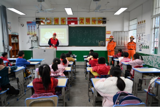 国家电网福建电力“双满意”(莆田电力义修哥)共产党员服务队走进菜溪电力希望小学,讲授电力安全教育课堂。(陈超/摄)