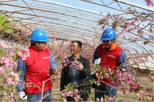 大棚内,百株桃树争奇斗艳,竞相开放,人面桃花相辉映,将高原春日里第一抹花香弥漫开来。近年来,为满足山庄用电需求,国网海西供电公司主动服务,共计为山庄新建和改造10千伏线路14.92千米,保障特色农业产业用户用上满意电、放心电。