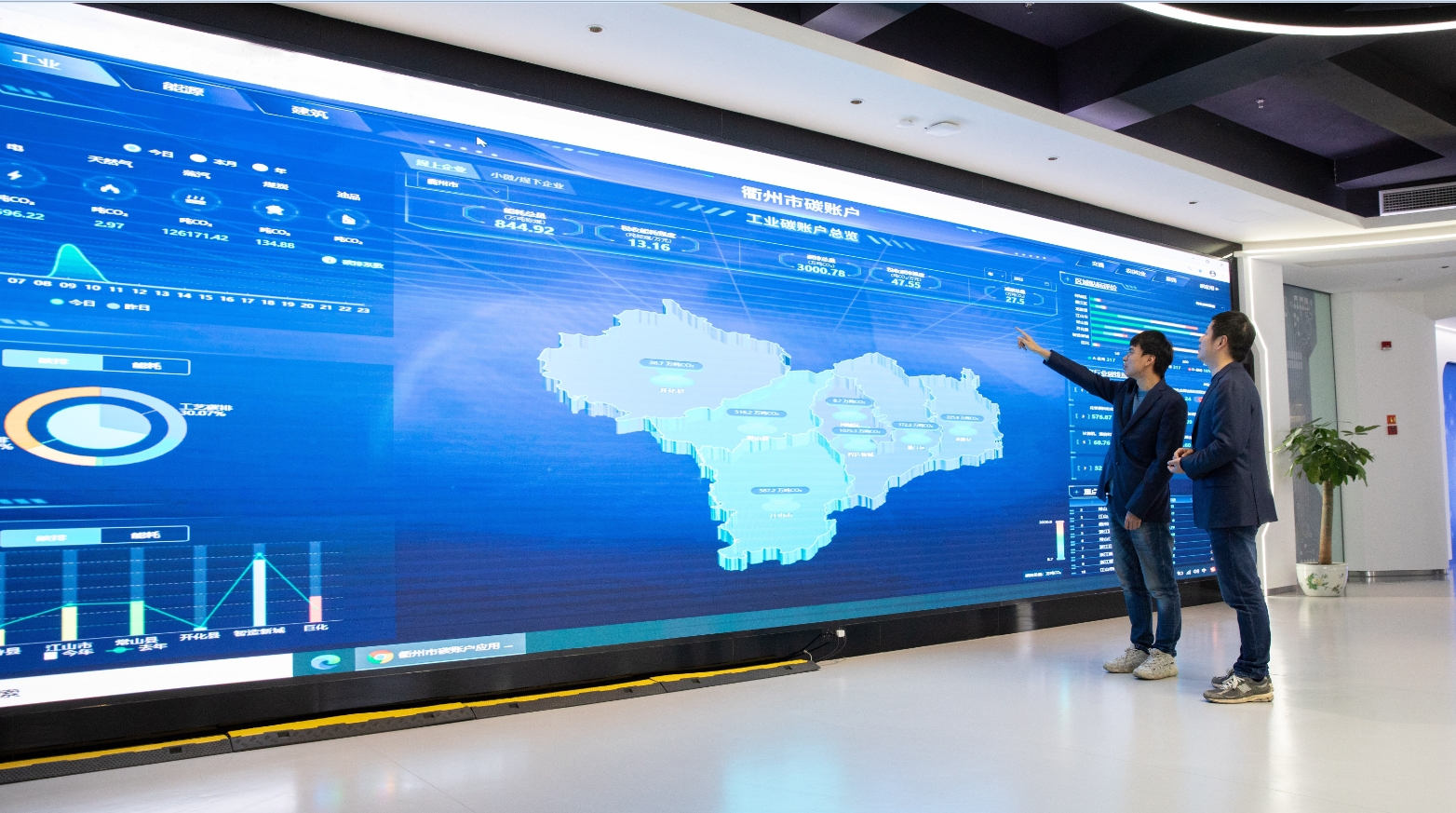 国网衢州供电公司工作人员通过碳账户系统了解当月企业用能情况。吴文涛/摄