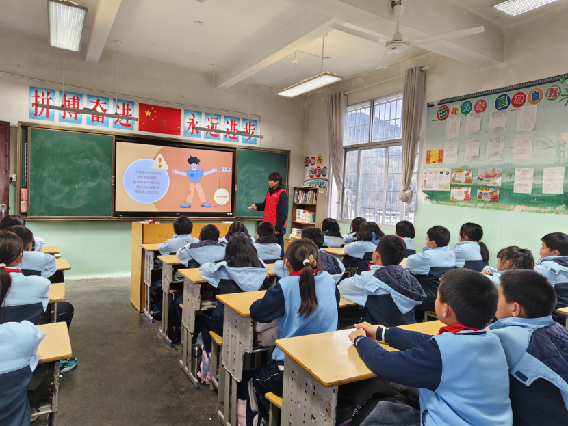 “同学们,当你看到电气设备着火了,你会怎么做呢?”“湿手可不可以触摸插座呢?”3月4日,在福建省宁化县治平乡湖背角村民族学校五年级2班课堂上,国网宁化县供电公司共产党员服务队、市公司劳模张县福正在讲课,为刚开学的学生们讲授题为《学习雷锋精神 倡导安全用电 保护自身安全》的公益课。