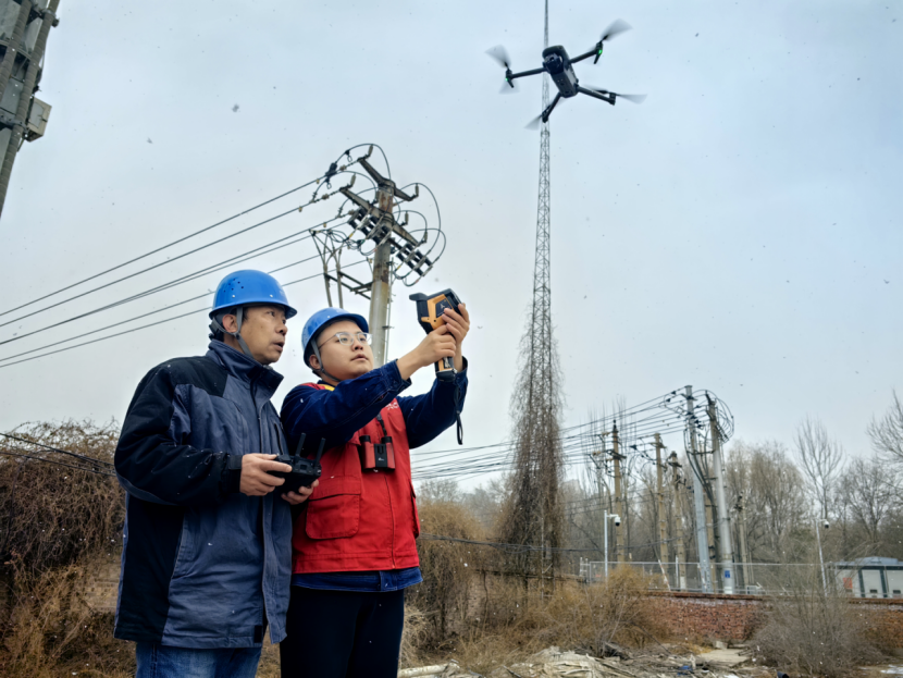 国网兰州供电公司安宁供电分公司员工利用无人机对110千伏水挂庄变10千伏出线电缆头进行测温巡视。何英/摄