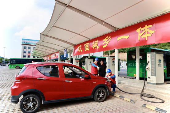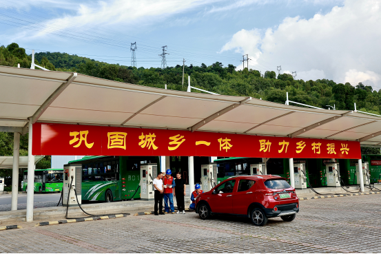图为国网山西平顺县供电公司太行黎明共产党员服务队在迪坤充电站检查充电桩设施,向客户普及充电安全知识。(国网山西电力/供图)