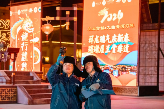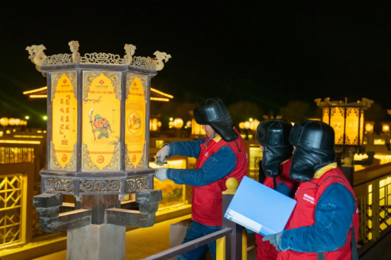 国网张掖供电公司供电员工在灯阵线路进行红外测温、负荷实测,全力保障赏灯活动顺利举办。