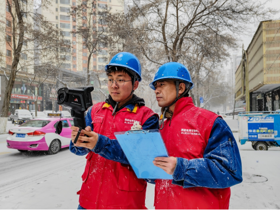 国网兰州供电公司西固供电分公司配电运检班员工姬建平、张良良对重要线路开展巡视检查,确保雪天线路安全稳定运行。何芙蓉/摄
